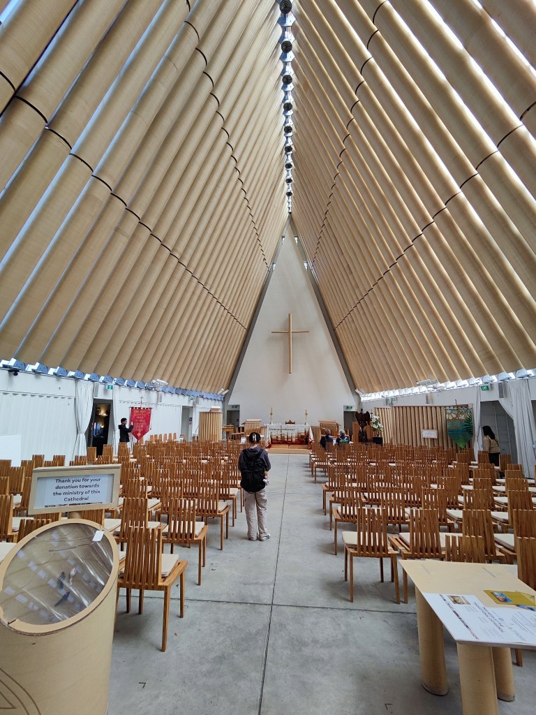 Julie then insisted we saw a proper church so we headed off to the ‘Cardboard Cathedral’. An amazing place built as a temporary replacement while the actual Christchurch Cathedral is being rebuilt. And yes, it is mainly built of cardboard tubes.