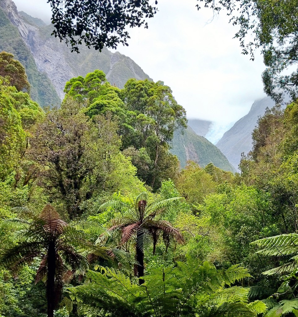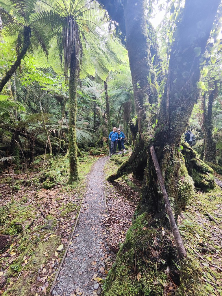 Today we head for what we thought would be a gentle trek through the rain forest to see the Fox Glacier. On the way, the sky was much clearer than when we arrived and we were able to see the Franz Josef mountain range.