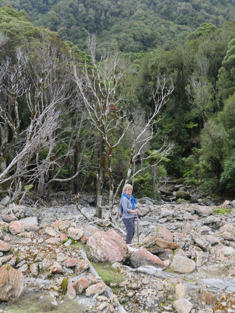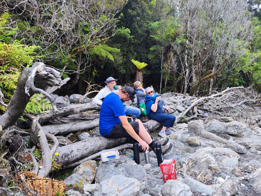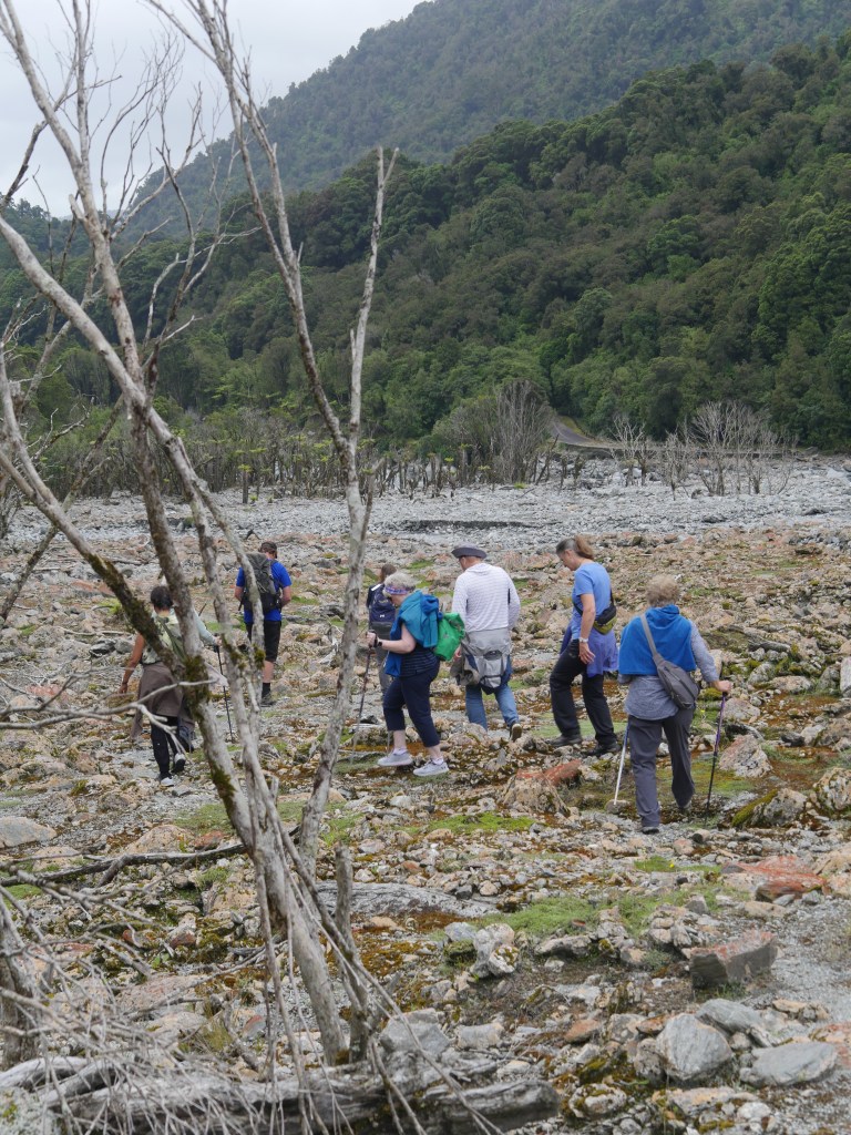 Cliff decides we are the type of group who would be up for a challenge on the way back so we head along the dry river bed before crossing a number of streams and scrambling up muddy banks. A challenge some of our American group do indeed struggle with.
