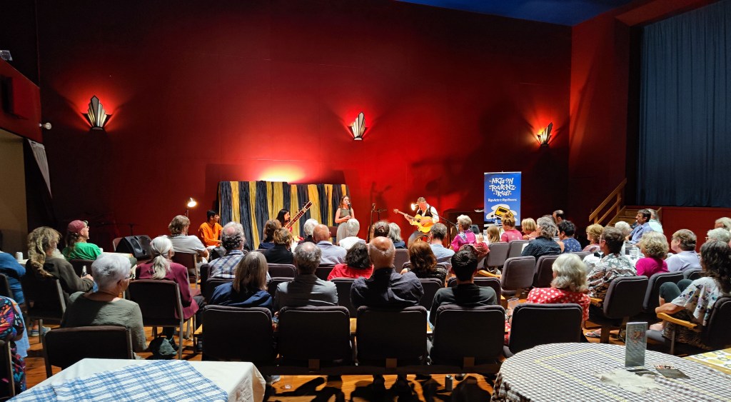 Now here is the thing, Angie and Phil told us there was a band on tonight at the local theatre (2 doors down!) and it was going to be a good gig. India meets Ireland fusion music. Only $25 and Angie and Phil have seen them and they are ‘really good’. Guy, the local chap that helps out the owner with the Ghost Lodge also asks if are going? He’s going and if we go to support the local community, we might double the number attending. Oh dear….