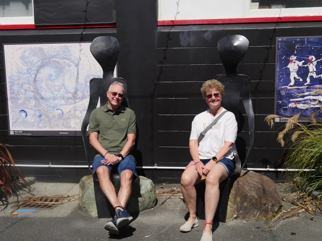 we are on our way to our next stop over, at The Ghost Lodge, in a small town called Gravity. This is an Air B&B meets (sort of) hotel where we have our own rooms and bathrooms but other people share the lounge and kitchen. Sharing with us were a couple from Wales, Angie and Phil. Angie was born in Wolverhampton(!) small world. They have a daughter in Wellington and were, like us, touring the south Island. They had done most of the route we had and like us, picked Ghost Lodge because it was reasonable in price and on the way to our next stop.