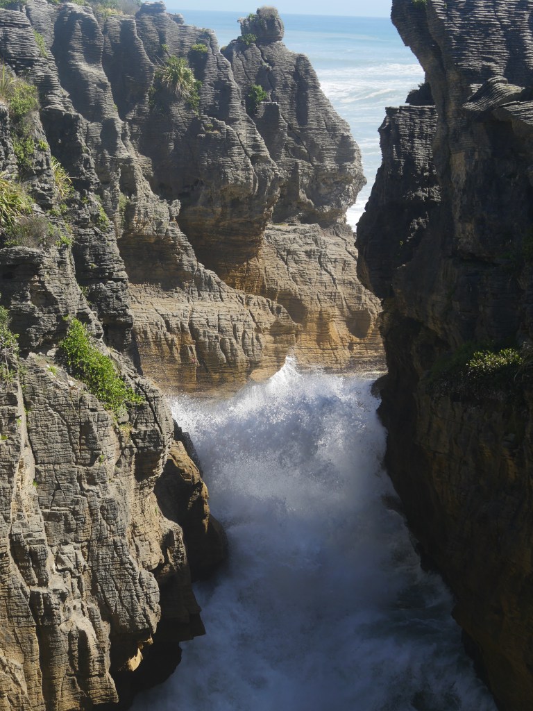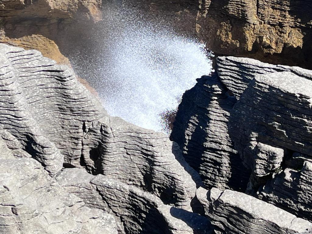 We were back on the road. Next stop, the natural wonder of Pancake rocks and blowholes. This is a truly great wonder of New Zealand and this is really a place to see! It is very well thought out in paths that lead you around so you get to see all you want to. And, it’s free! If this was in Cornwall or anywhere in the UK for that matter, it would cost you a small fortune to view. They are in the process of building a visitor centre which will be fantastic when finished. New Zealand know how to promote tourism!