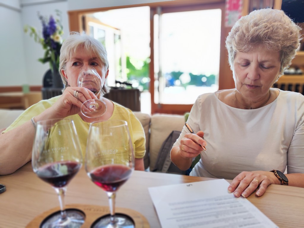 For the next hour and a bit, Julie and Lynn try 9 different wines with lots of “Ooo, that’s nice” and “Hmm, that’s acceptable” and “Ooo, that’s very Quaffable”. I sip water, nibble on the free crackers and take pictures…..