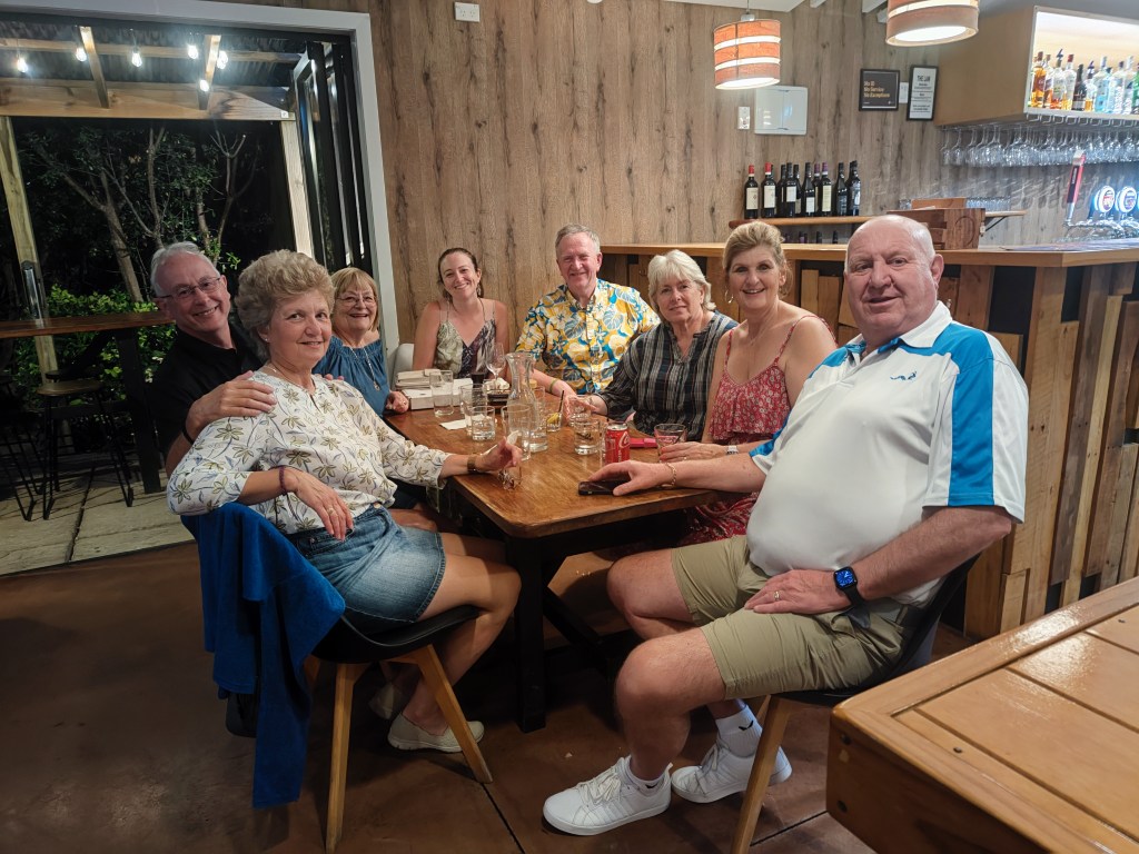 And having returned to base, via ‘Super Liquor’ to replenish stocks for the rest of the afternoon, we stroll down to the local restaurant to meet with Zoe, Diane and Stuart for a lovely evening meal to round off a great day.