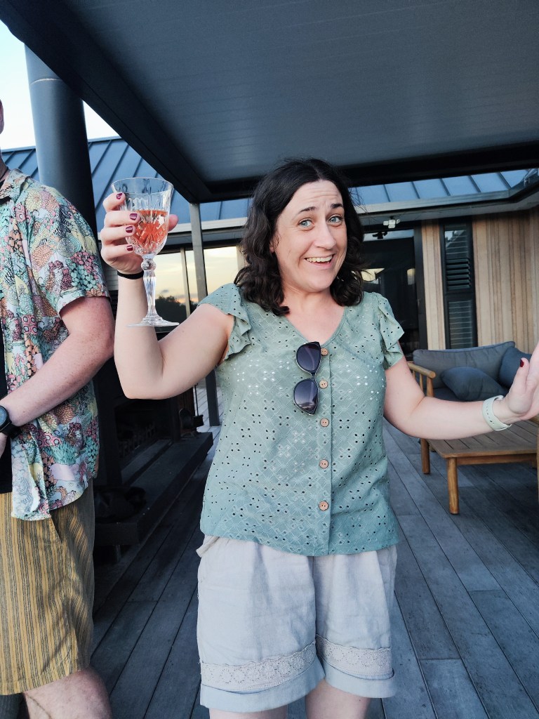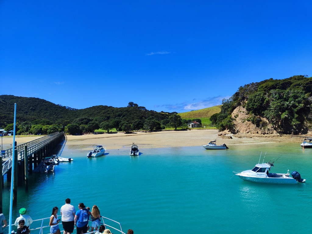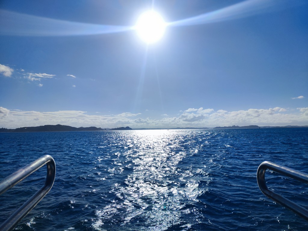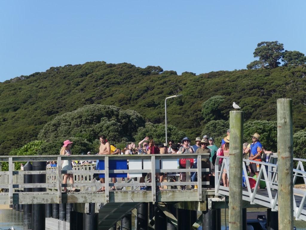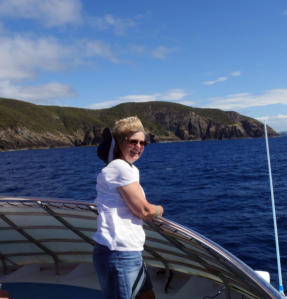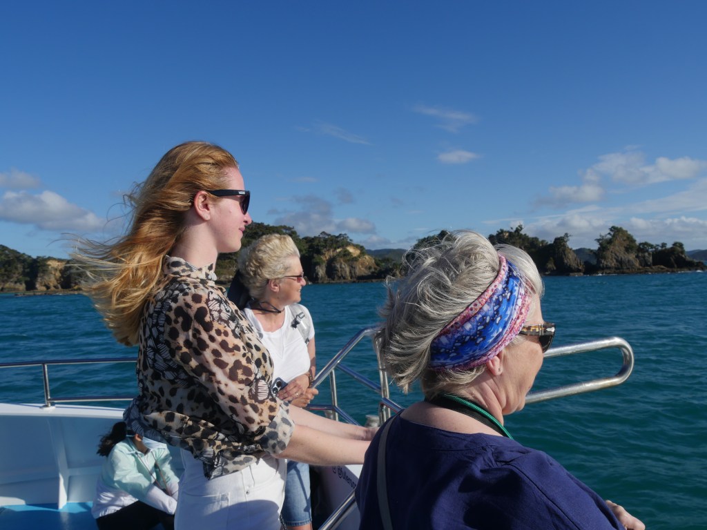The Hole is on the rightbetter view.and we go through it… I don’t think James was driving the boat.We then get a nice view of the Cape Reinga Lighthouse which we had visited the day before.On the way back, we get to stop off at an Island for a short time and Lynn and I agree that we are going to get in the queue early for the boat back and beat the Japanese chaps (who slept all the way to the hole in the rock) to the front seats on the boat. The plan didn’t quite work as when we went to queue (with Julie and Kate) there was already a sizable queue. The rest of our party were a substantial length of the queue behind us and this was, allegedly, the last boat back. I joked about how funny it would be if they didn’t get on… well…Yes, that is Stuart and Diane waving us goodbye as said the boat was full. Whoops! There was 2 good things to come out of this. 1. there was another boat to pick up the remaining passengers, the boat we arrived on. 2. The boat we had got on was the fast boat straight back to port, 25 minutes with the bonus of, we had the front of the boat pretty much to ourselves!Boating Babes – Step on it Captain. The extra bonus was, we were able to have ice creams while we were waiting for for the rest of the gang, who were on the slow boat.