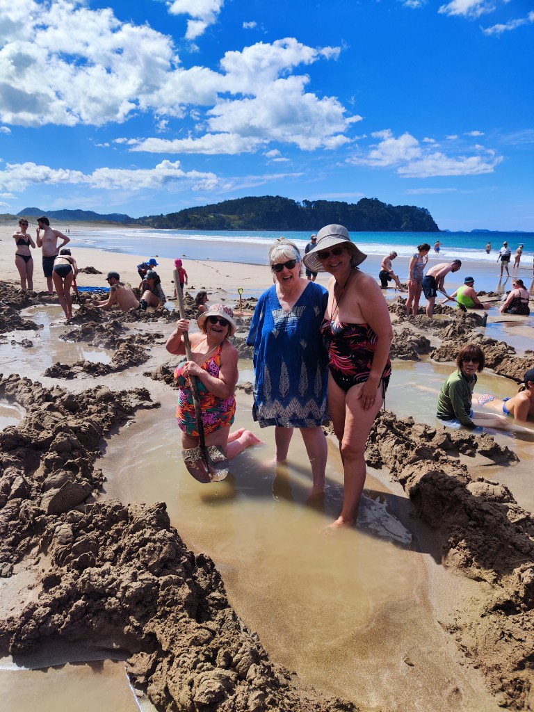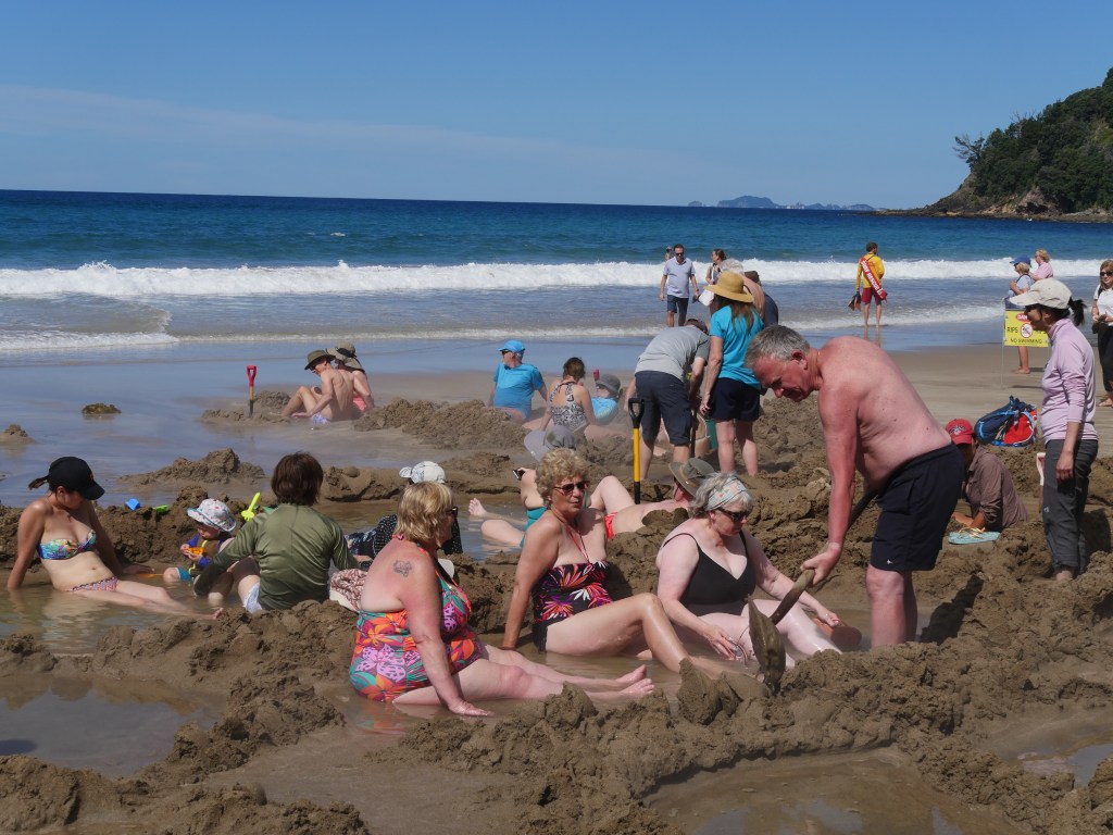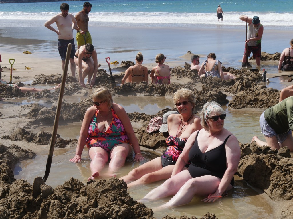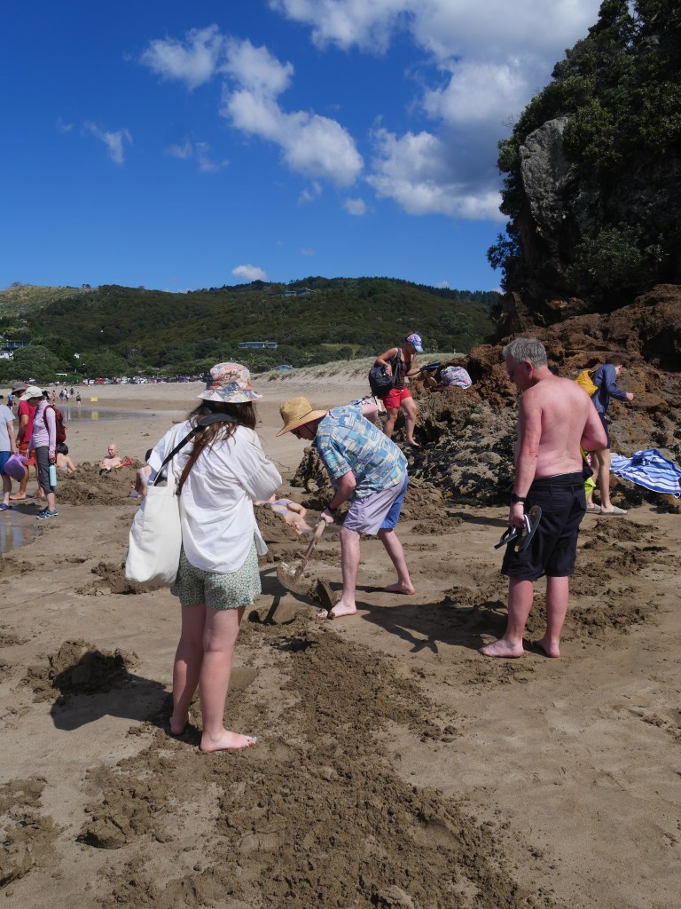 Then we were off to Hot Water beach. As you may be able to guess from the name, hot water springs come from under the sand and the idea is, you dig a hole so that it fills with hot water and sit in it.