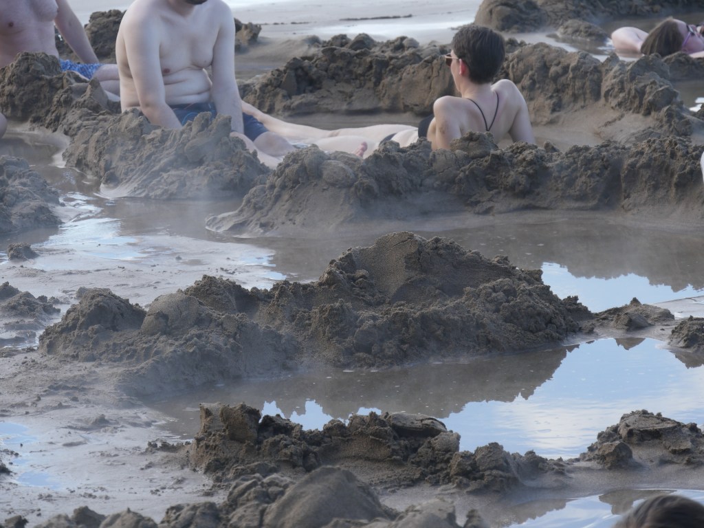 As I said, Hot Water beach is very popular. Can you guess where the hot springs are in the photo below?