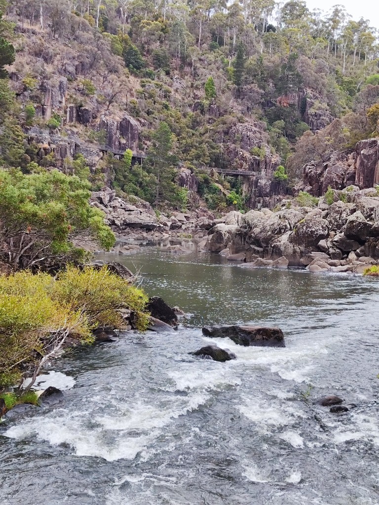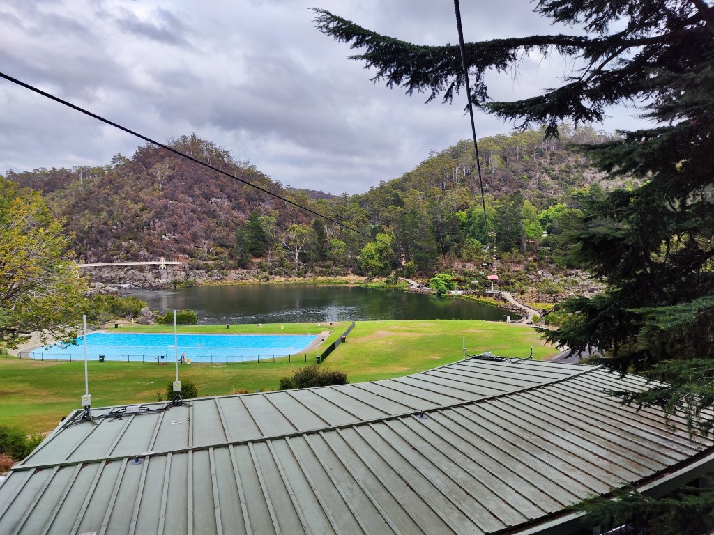 We are on the road for Cataract Gorge, as recommended by our friendly receptionist. and it’s a great place. They have a chairlift and an out door swimming pool for the public, and a great gorge too – not Cheddar Gorge of course but still good.
