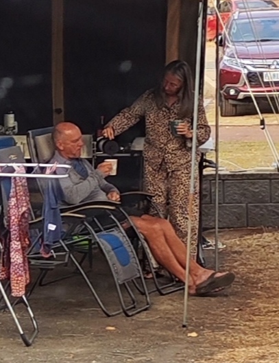 The next morning we are rested and ready to face the day. But first, I need to say, Julie really needs to up her game as far as ‘breakfast dress’ ‘goes and really get in to the outside living.