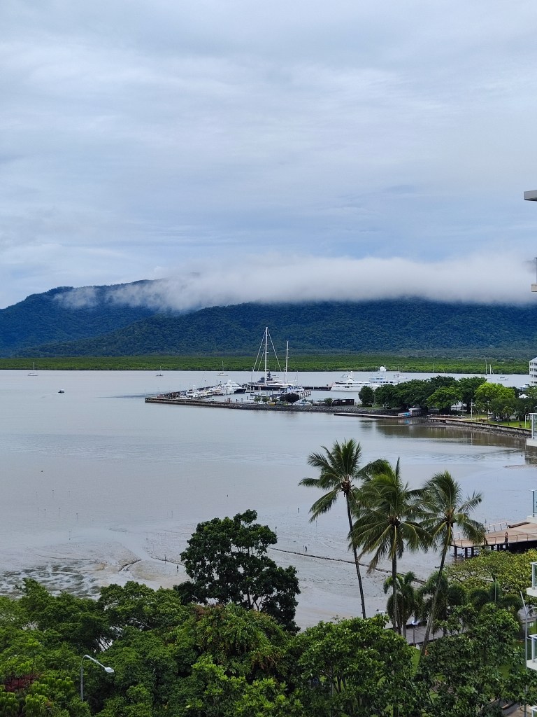 After drying out from yesterdays rainforest adventure (shoes are still wet), Julie was still suffering with her knee. This was our last full day in Cairns so it was a ‘taking it easy’ kind of day. Also the forecast was for heavy rain, again. As it happened, we didn’t have any rain at all! Just grey sky all day. So breakfast on the balcony, as usual, with fruit….