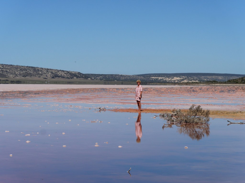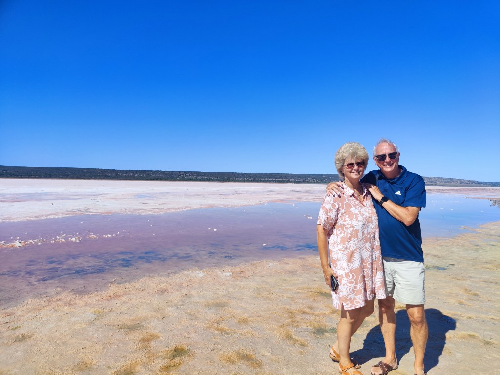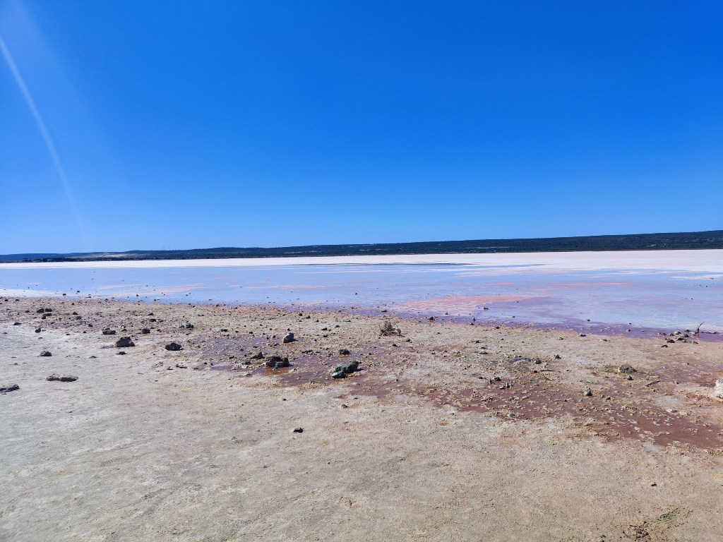 Refreshed we were back on the road for our first proper stop at Hutt Lagoon, also known as the Pink Lagoon because it’s pink!