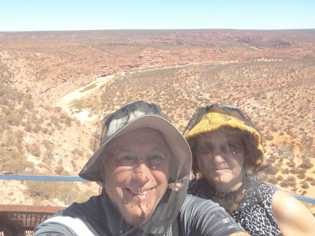 An hour and a half later, having stopped in Kalbarri for tea and cake, we were back. This time prepared and ready for action… with the temperature pushing 36 degrees. Didn’t matter, we had nets to protect our faces.