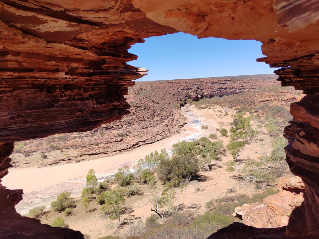 We left the Skywalk and drove to another part of the park to see Natures Window, formed by layers of Tumblagooda sandstone , it’s a natural window that looks out on the the lake below (when there is water flowing).