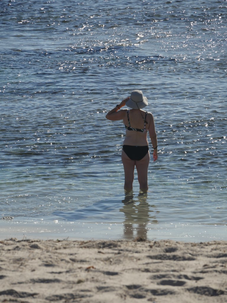 Its 2.30pm, too hot to walk in the park so we head for Blue Hole beach…
